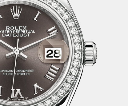 Unworn classic watch Rothtlex Lady-Datejust 28, Oystersteel and 18k White Gold, Ref# 279384RBR-0016 - luxury, elegance and practicality.